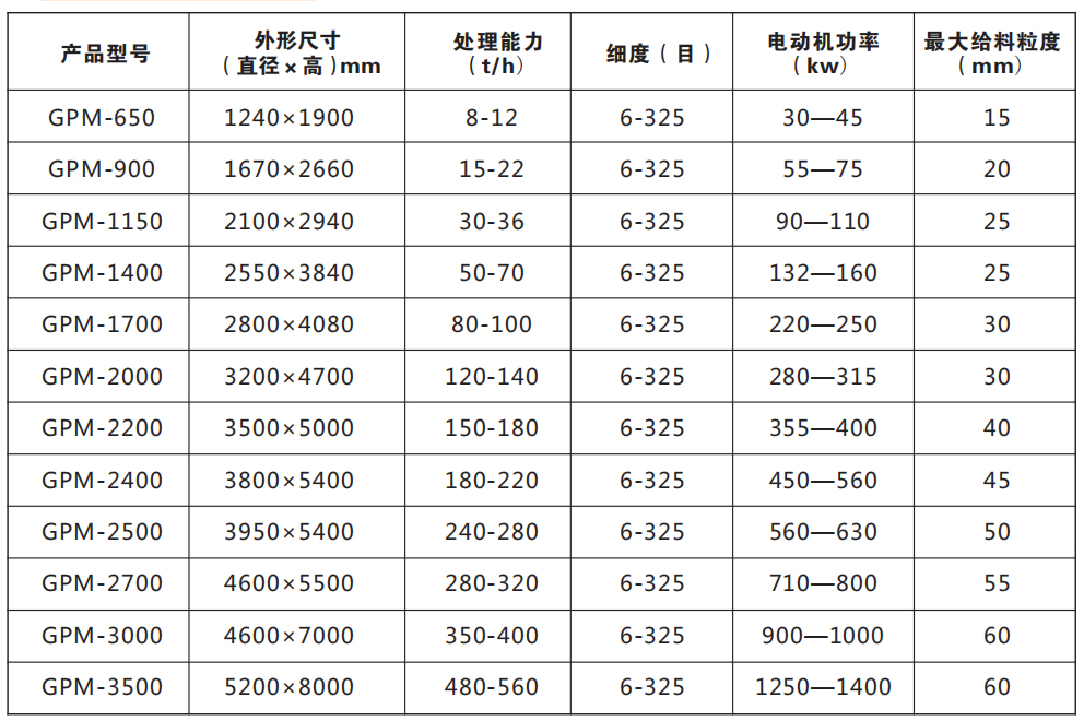 4、适应范围广: 既可作圈流粉磨系统,也可作预粉磨;成品粒度从-6目至325目均可;可作干法磨,也可作湿法磨;可适用于硬物料的粉磨。